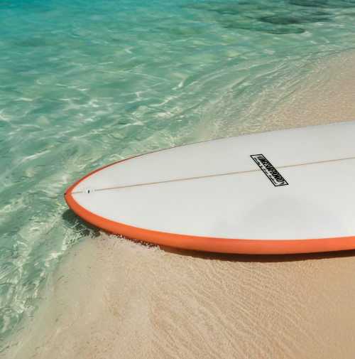 余裕のあるボリュームで楽に波をとることをターゲットにしたシェイプです。パワーの無いトロめの波でも、フロント加重することで推進力を発揮します。